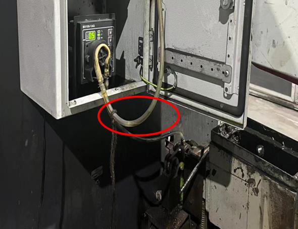 将泵体安装在抛光机箱体外部高于焊丝处,上面的塑料容器中加入防锈油,设定好注入时间和注油量,防锈油会被自动注入到出油管端部的毛毡塞。